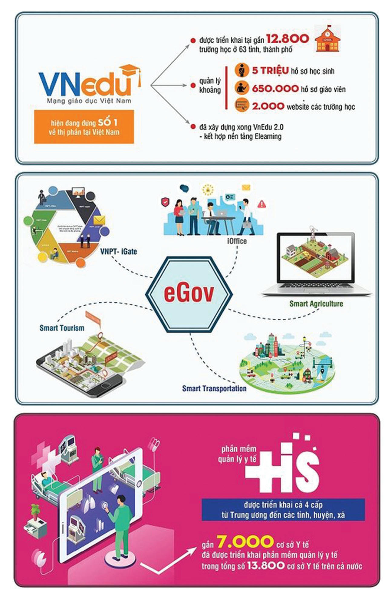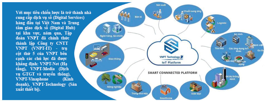 Để đạt được mục tiêu đó, ngay từ giai đoạn tái cơ cấu đầu tiên VNPT đã định hướng đẩy mạnh phát triển mảng dịch vụ số. VNPT đã định hướng xây dựng các giải pháp, dịch vụ số theo mô hình hệ sinh thái dựa trên các nền tảng dịch vụ số mà VNPT đang xây dựng như nền tảng media và dịch vụ truyền hình, nền tảng Chính phủ điện tử, nền tảng tích hợp Đô thị thông minh, nền tảng IoT… Hệ sinh thái giải pháp của VNPT đang ngày càng phong phú và hoàn thiện với các giải pháp ở nhiều lĩnh vực như xây dựng Chính phủ điện tử, Y tế, Nông nghiệp, Giáo dục, các giải pháp xây dựng đô thị thông minh khác…