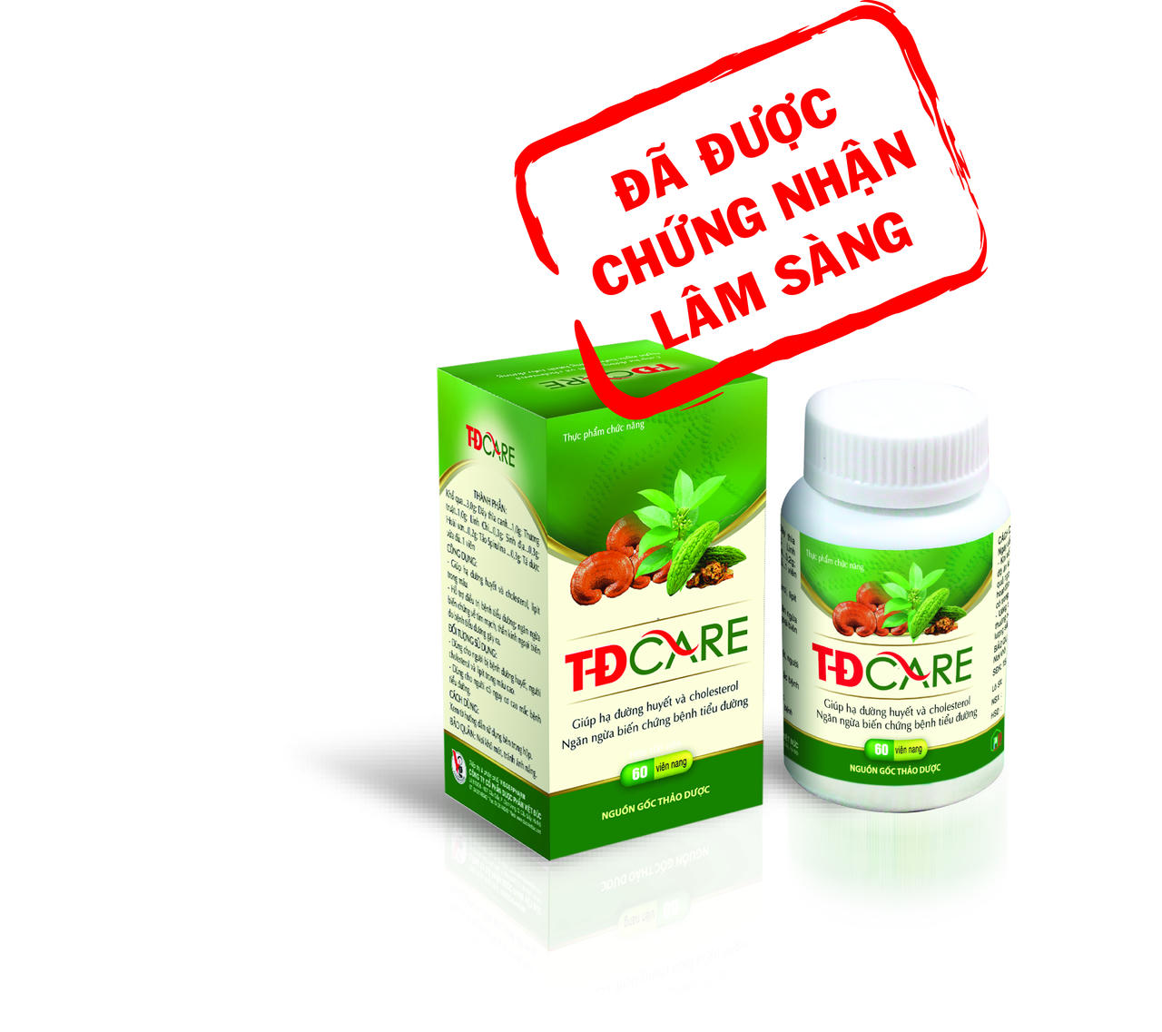 Thực phẩm bảo vệ sức khỏe TĐCARE được kết hợp từ 7 thảo dược quý (Khổ qua, dây thìa canh, tảo spirulina, thương truật, linh chi, sinh địa, hoài sơn) giúp hạ đường huyết, hỗ trợ làm giảm cholesterol máu. TĐCARE làm giảm chỉ số HbA1c, giảm các nguy cơ biến chứng của bệnh tiểu đường, phòng bệnh cho các đối tượng có nguy cơ cao.