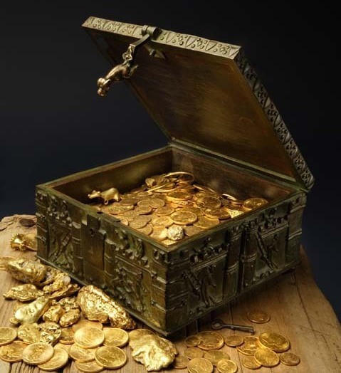 Hình ảnh rương báu chứa vàng ngọc của vị triệu phú.