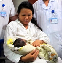 Hàng trăm người đứng chật kín sân Bệnh viện Phụ sản TW để chờ đợi và chứng kiến khoảnh khắc chào đón bé trai Phạm Xuân Trường trở về với gia đình. Mẹ cháu bé, chị Thơm không kìm nén được cảm xúc, ngất đi trong niềm vui. Bác sỹ Trần Tuyết Lan - Trưởng khoa sản 2, là người đầu tiên chạy ra đón Trường và ôm chặt bé vào lòng trong niềm hân hoan và nụ cười rạng rỡ.