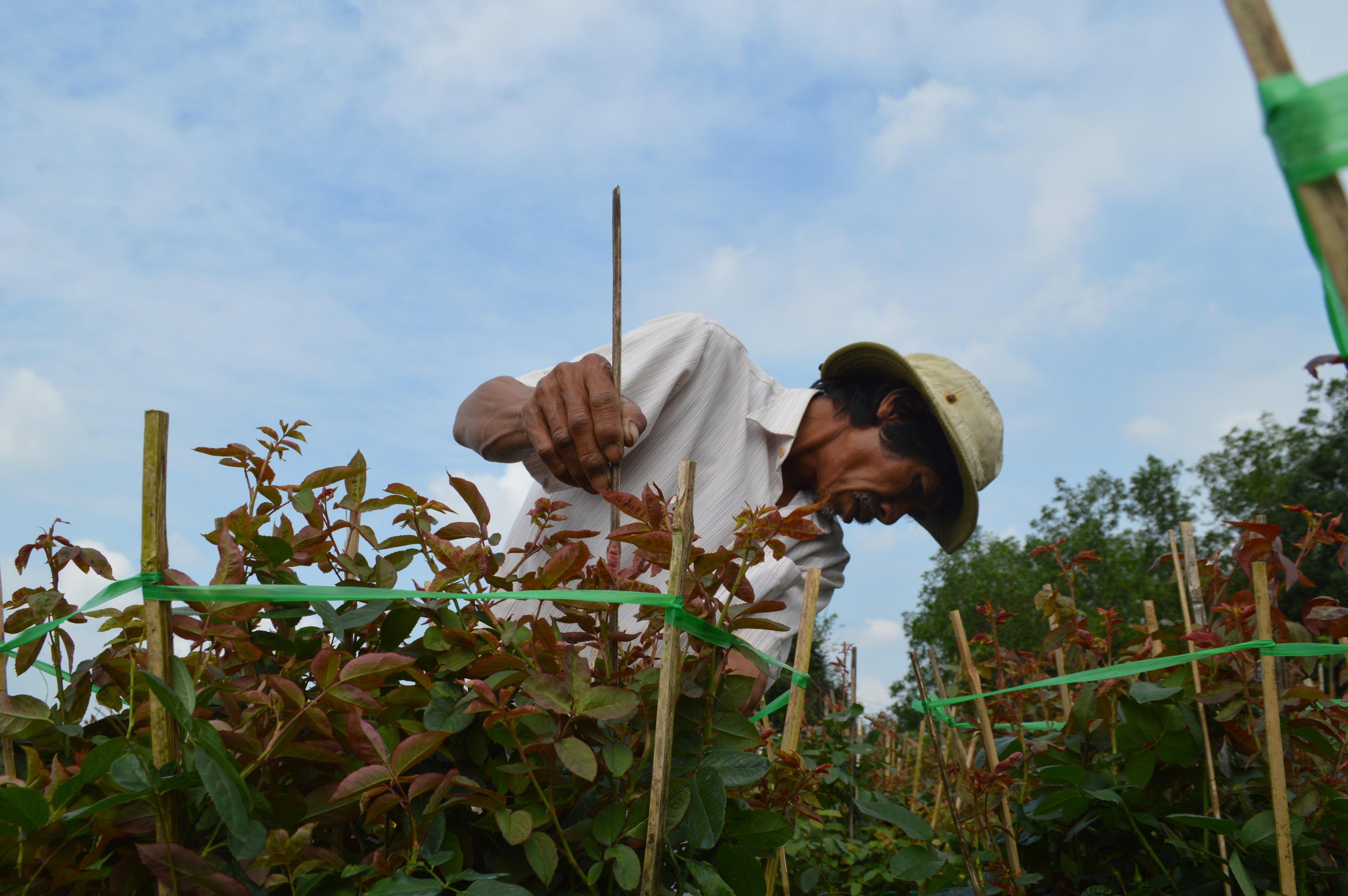 Ông Nguyễn Dũng (60 tuổi) ở huyện Tư Nghĩa, chăm sóc hơn 200 chậu hoa hồng đang ra nụ cũng bồn chồn khi hoa chưa nở, quá trình chăm hoa như cách nhiều người ví von, đó là “canh, me” vì vừa phải chống sâu bệnh, vừa phải chăm sóc cho cây có sức vươn lên rồi bung nở đúng "độ" đảm bảo đẹp thì khách mới chọn mua. Tất cả những công đoạn đoạn đó khiến người nông dân mất ăn, mất ngủ.