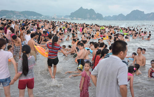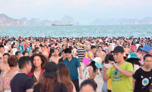 Khu vực bãi tắm được đưa vào sử dụng chỉ rộng khoảng 200m, dài 300m nên nhanh chóng chật cứng người (Ảnh: Đài PT và TH Quảng Ninh)