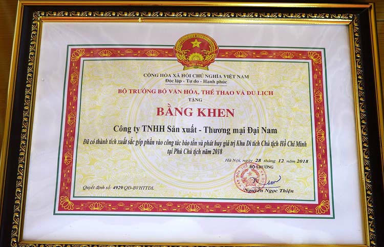 Trước những thành tích đáng tự hào, ông Trần Ngọc Nam cũng đã vinh dự nhận bằng khen từ Bộ trưởng Bộ Văn hóa, Thể thao và Du lịch vì đã có thành tích xuất sắc góp phần vào công tác bảo tồn và phát huy giá trị Khu Di tích Chủ tịch Hồ Chí Minh tại Phủ Chủ tịch.