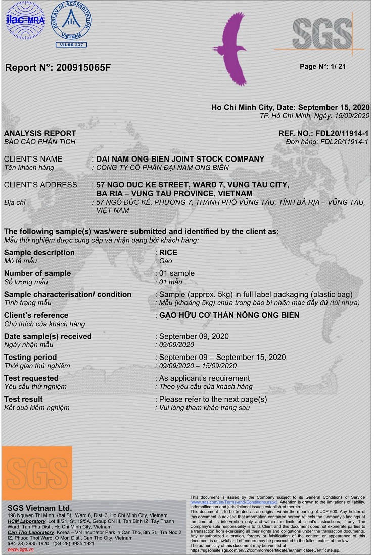 Kết quả, lúa canh tác theo quy trình công nghệ Ong Biển chín đều, hạt chắc, thon, dài và đặc biệt là trong hạt lúa,sản phẩm gạo hữu cơ Ong Biển có hai hợp chất Momilactone A và Momilactone B cao gấp hàng trăm lần so với các loại lúa gạo ở Nhật Bản. Đây là phát hiện khoa học mới nhất của PGS. TS Trần Đăng Xuân, trưởng phòng thí nghiệm Sinh lý thực vật và Hóa sinh trường Đại học Hiroshima Nhật Bản.