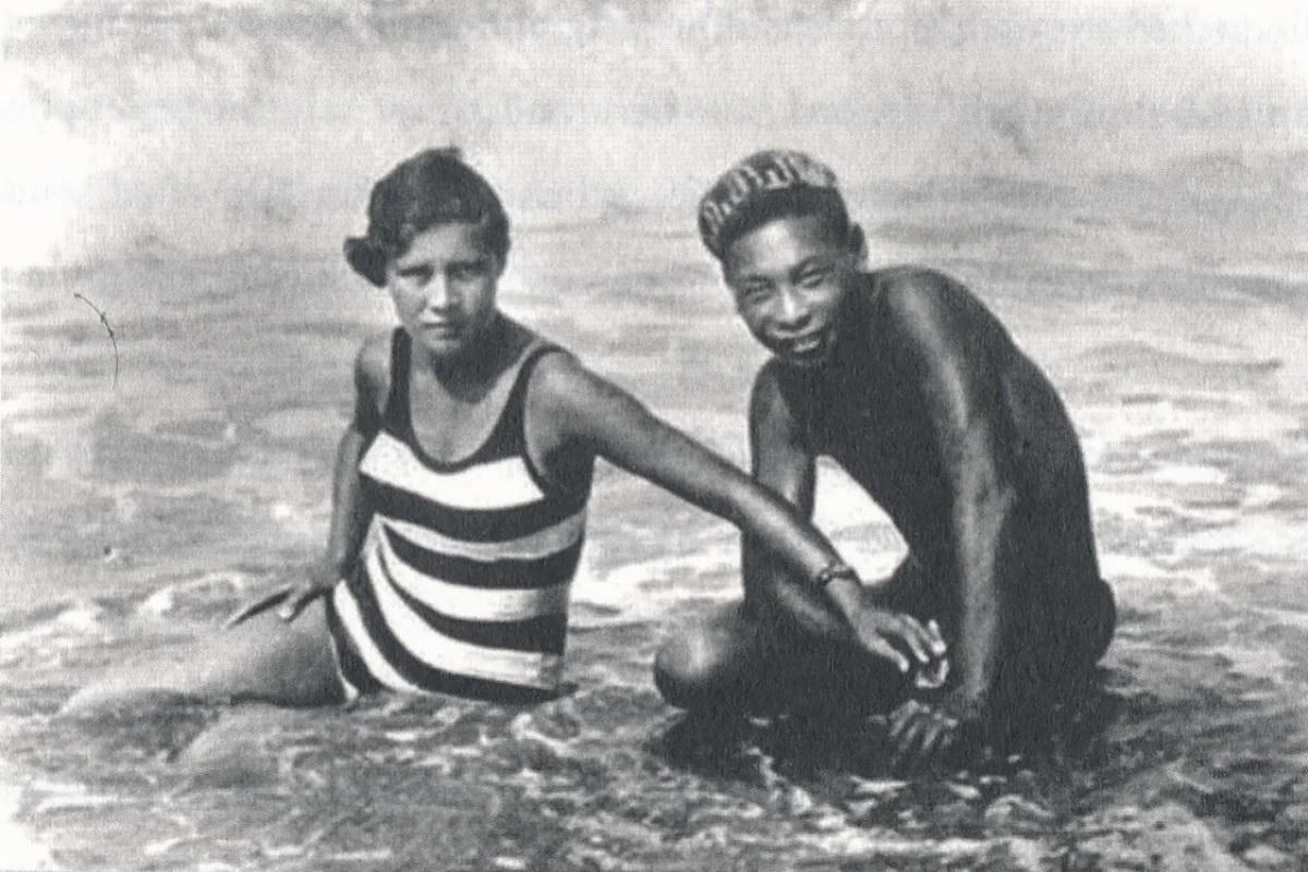 Trong một bức ảnh được chụp vào giữa những năm 1930, một phụ nữ trẻ mặc áo tắm sọc nằm ở vùng nông của một con sông gần thành phố Sverdlovsk của Nga.