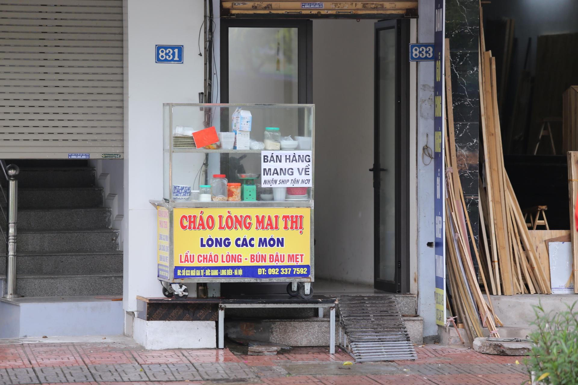 Tất cả các cửa hàng ăn đều dán biển "bán hàng mang về". Ảnh: Mỵ Châu |