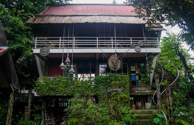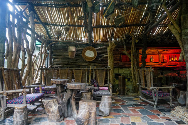 Chúng tôi ghé quán cà phê “Eva” vào một chiều mưa tầm tã, ngay từ khi vừa bước chân vào cổng chúng tôi đã bị giật mình vì cảnh vật và cách bài trí có thể nói là “độc nhất vô nhị” ở đây.