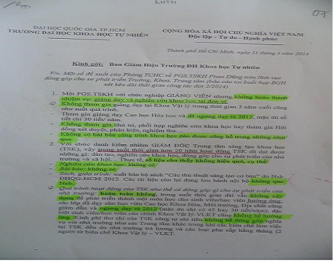 Ông Dũng cũng chỉ ra những điểm vô lý trong việc nhà trường đánh giá quá trình công tác của ông: “Trải qua nhiều đời tổ trưởng, ban lãnh đạo không ai trong số họ giao hay phân công nhiệm vụ cho tôi tại khoa Vật lý. Mỗi năm đánh giá cán bộ công nhân viên chức, tôi đều hoàn thành xuất sắc nhiệm vụ, hoàn thành tốt nhiệm vụ”.