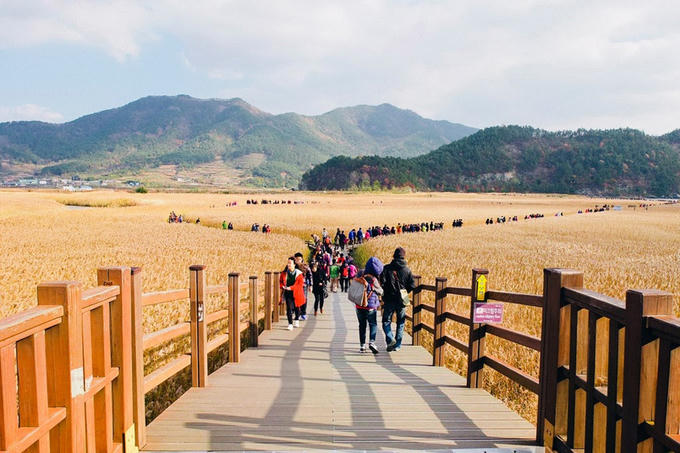 Thời điểm lý tưởng nhất để ngắm vẻ đẹp thiên nhiên của khu sinh thái Suncheon là mùa thu. Từ tháng 10, cả cánh đồng lau sẽ ngả dần sang màu vàng óng, tạo nên khung cảnh lãng mạn.