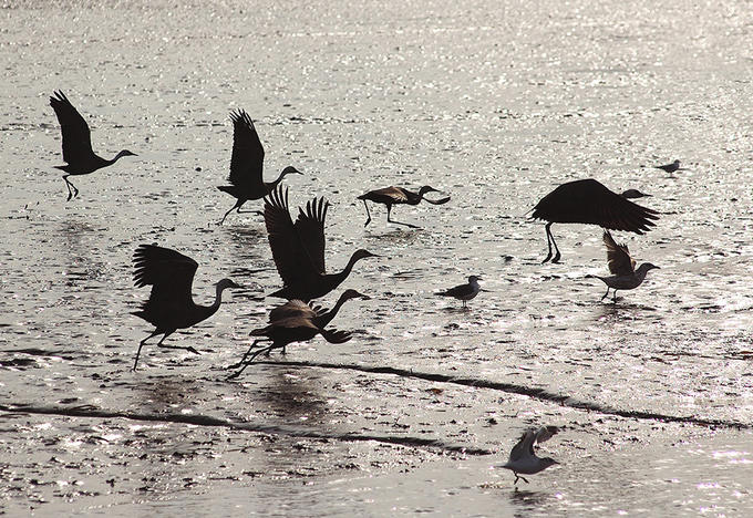 Mùa thu cũng là lúc hơn 1.000 loài chim di chuyển từ khắp nơi trên thế giới về Suncheon để trú đông. Không ít nhiếp ảnh gia chọn thời điểm này để "săn" những bức ảnh đẹp về loài sếu, hoặc lưu lại khoảnh khắc hoàng hôn bình yên trên vịnh Suncheon.
