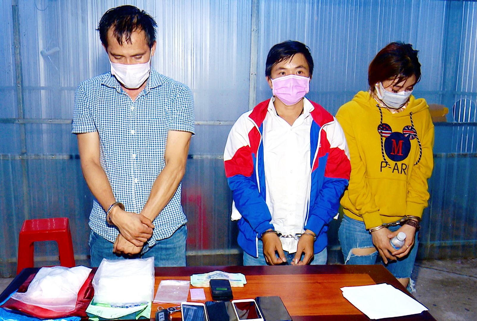 Các đối tượng mua bán trái phép ma túy bị Công an bắt giữ. |
