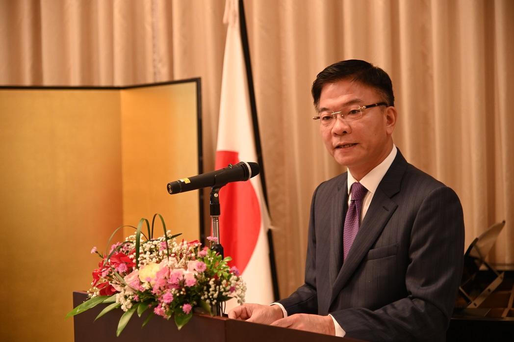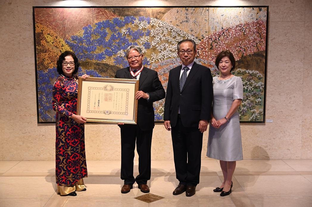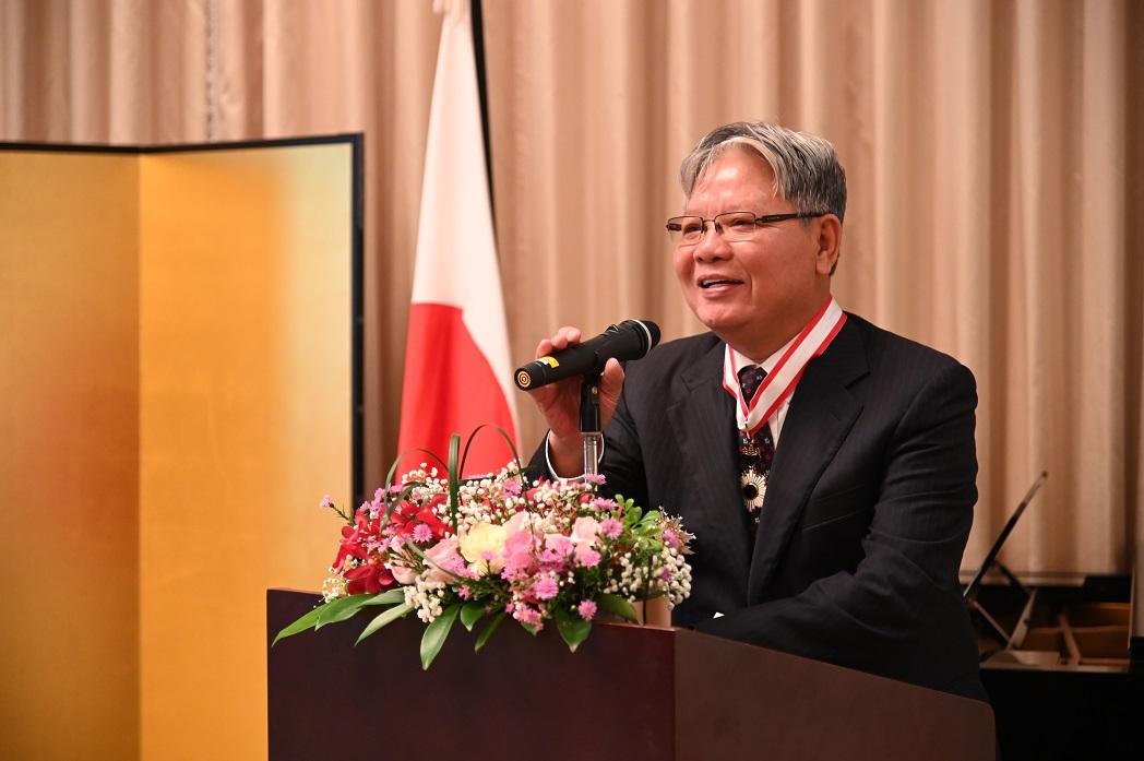 Phát biểu tại buổi lễ, PGS.TS Hà Hùng Cường bày tỏ vinh dự đón nhận Huân chương Mặt Trời mọc, Ngôi sao Vàng và Bạc cao quý của Nhà nước Nhật Bản.