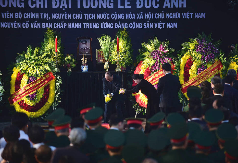 Trước đó, để tỏ lòng tiếc thương Đại tướng Lê Đức Anh, các lãnh đạo Đảng, Nhà nước, gia quyến và nhân dân dành một phút mặc niệm trước linh cữu.