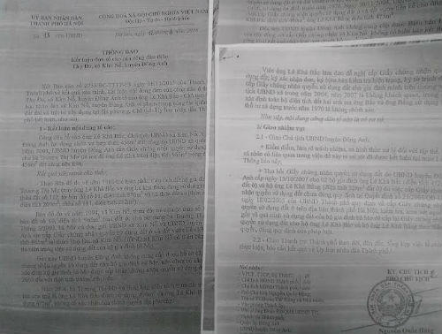 Thế nhưng, năm 2007, ông Bắc và ông Bằng lại có đơn gửi UBND xã Kim Nỗ, UBND và Phòng TN&MT huyện Đông Anh đề nghị hủy GCN do UBND huyện Đông Anh cấp năm 2004 cho hộ gia đình ông Bắc, ông Bằng vì diện tích đất ghi trên GCN không đúng với thực tế sử dụng đất, hình thể thửa đất vẽ trên GCN sai so với thực tế.