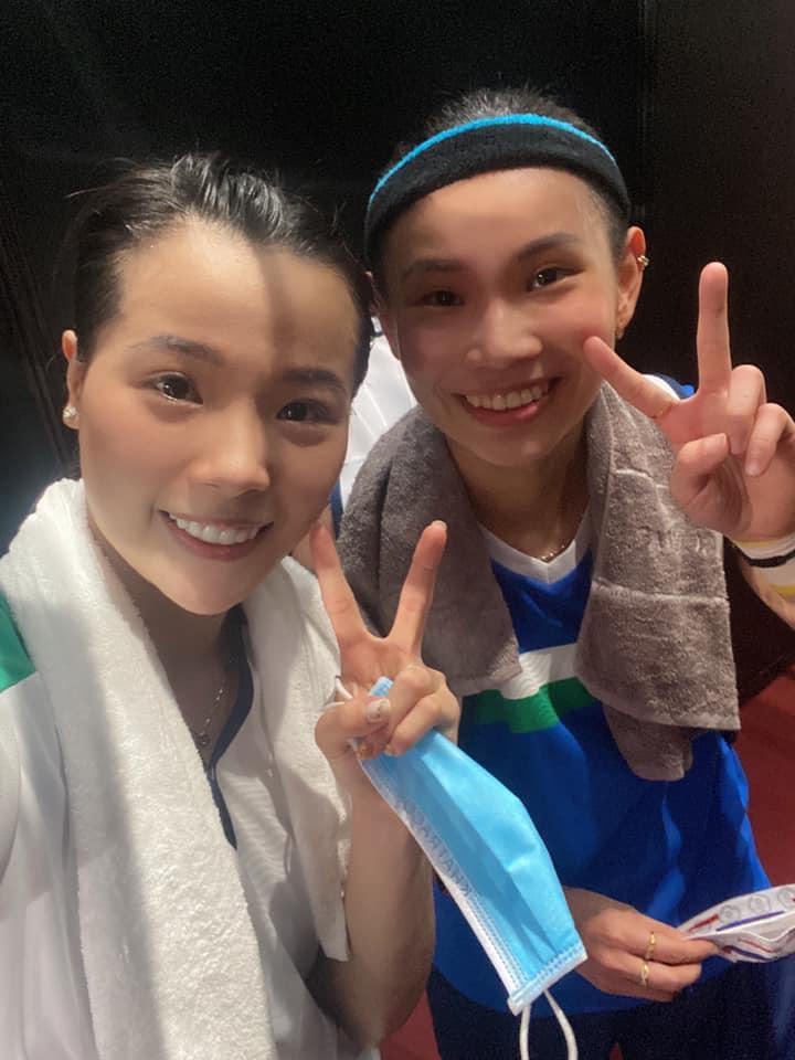 Thùy Linh và đối thủ sau trận đấu mà cô chia sẻ là "thần tượng của mình và được thi đấu ở đấu trường Olympic là một giấc mơ" |