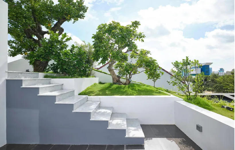 Khu vườn sân thượng được thiết kế dốc để tránh tình trạng đọng nước trên mái. Nguồn ảnh: M MHome |