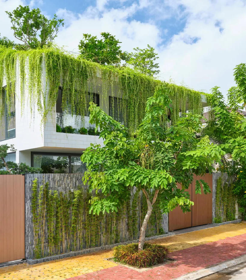Mặt tiền của ngôi nhà được bao phủ bởi nhiều hệ cây xanh khác nhau, làm tăng tính kết nối với thiên nhiên, xóa tan sự ngột ngạt của phố thị. |