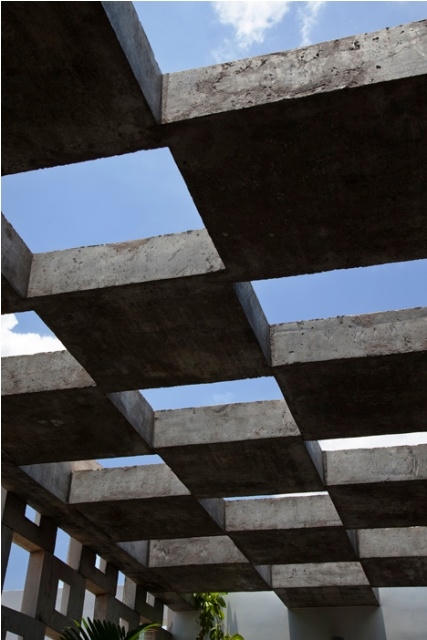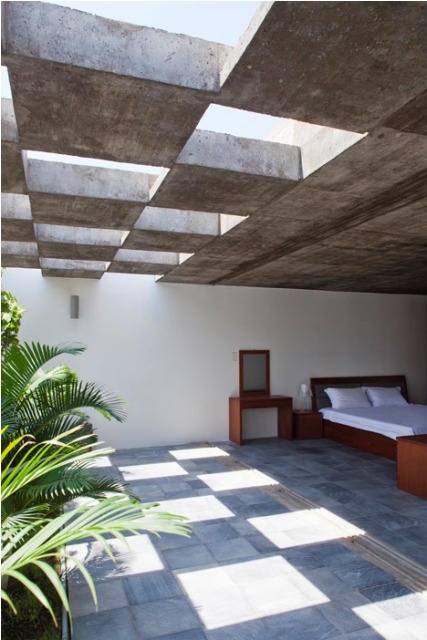 Trần ô vuông rỗng dẫn ánh sáng vào khu vườn nhỏ (Ảnh: ArchDaily) |