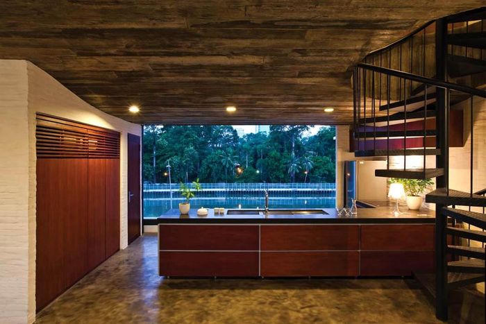 Hồ nước phía trước khu sinh hoạt chung giúp không khí mát mẻ hơn (Ảnh: ArchDaily) |