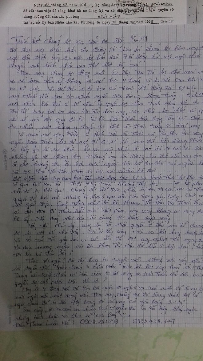 Tuy nhiên năm 1998, Hội đồng đăng ký đất đai xã Bình Hưng lại có ý kiến trong đơn xin đăng ký quyền sử dụng ruộng đất (bà Mùi lập năm 1994) với nội dung: “Thuận cấp diện tích 9.793m2 gồm các thử 58, 59 tờ bản đồ số 15. Kính chuyển Hội đồng xét cấp giấy chứng nhận quyền sử dụng ruộng đất huyện giải quyết”.