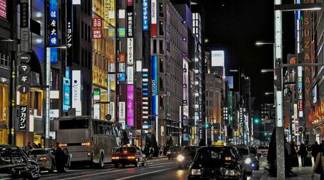 | Khu phố mua sắm sầm uất Ginza ở thành phố Tokyo |