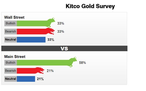 Trong số 440 nhà đầu tư tham gia khảo sát trực tuyến trên Main Street, có 255 người (58%) dự đoán giá vàng sẽ đi lên. 94 người (21%) nhận định giá vàng sẽ giảm. 91 người (21%) cho rằng giá vàng trong tuần tới sẽ "giậm chân tại chỗ".