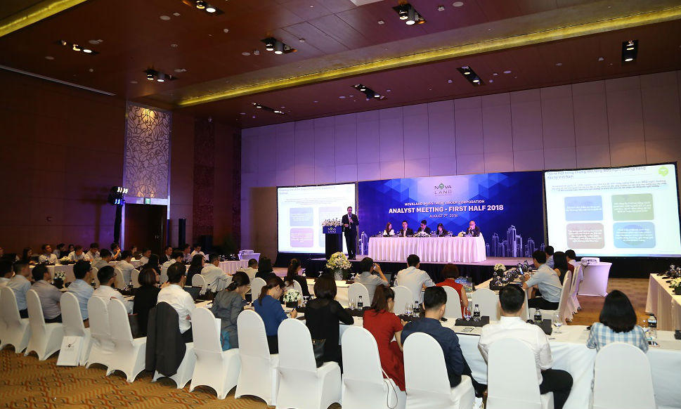 (PLO) - Tập đoàn Novaland vừa tổ chức buổi Gặp gỡ nhà đầu tư (Analyst Meeting) nhằm chia sẻ kết quả kinh doanh 6 tháng đầu năm 2018 cũng như định hướng phát triển của Novaland trong thời gian tới. Buổi gặp gỡ thu hút gần 100 nhà phân tích chứng khoán, nhà đầu tư tài chính đến từ các công ty chứng khoán, các quỹ đầu tư lớn.