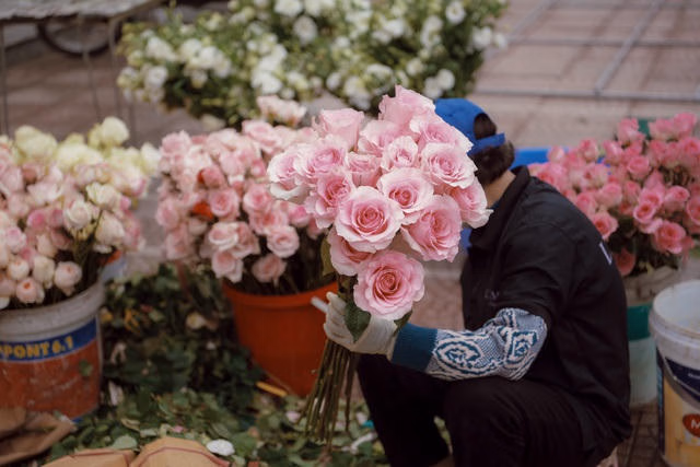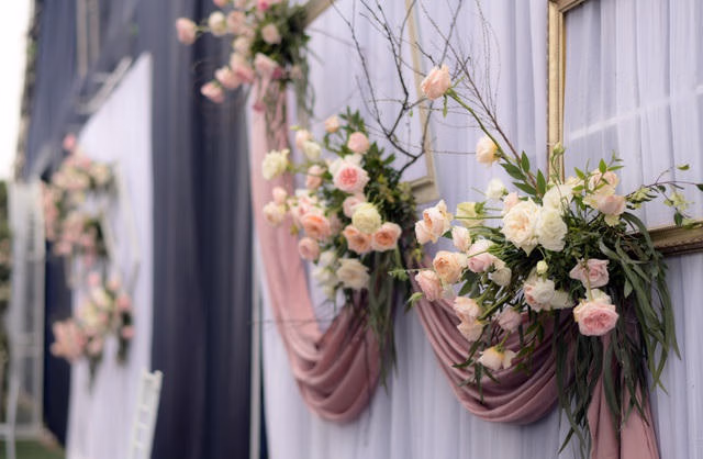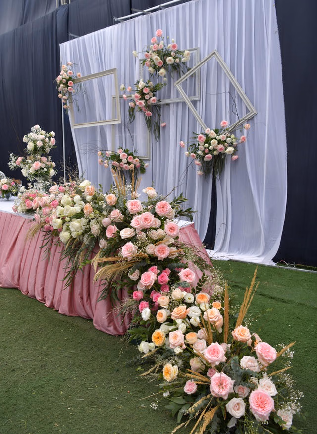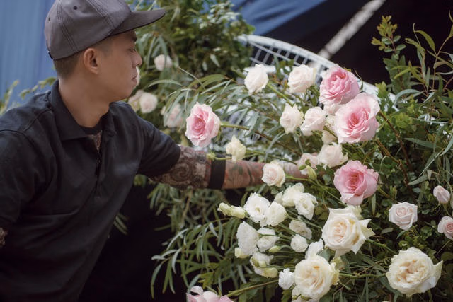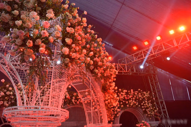 Rạp cưới được trang trí bằng hàng triệu bông hồng Đà Lạt được chuyển ra bằng máy bay.
