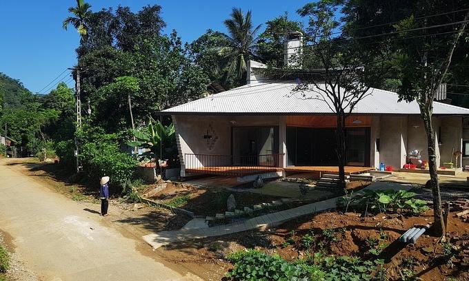 Căn nhà xây 80 m2 được xây dựng cho một đôi vợ chồng hai con nhỏ người dân tộc Thái, vốn chỉ quen ở nhà sàn truyền thống.