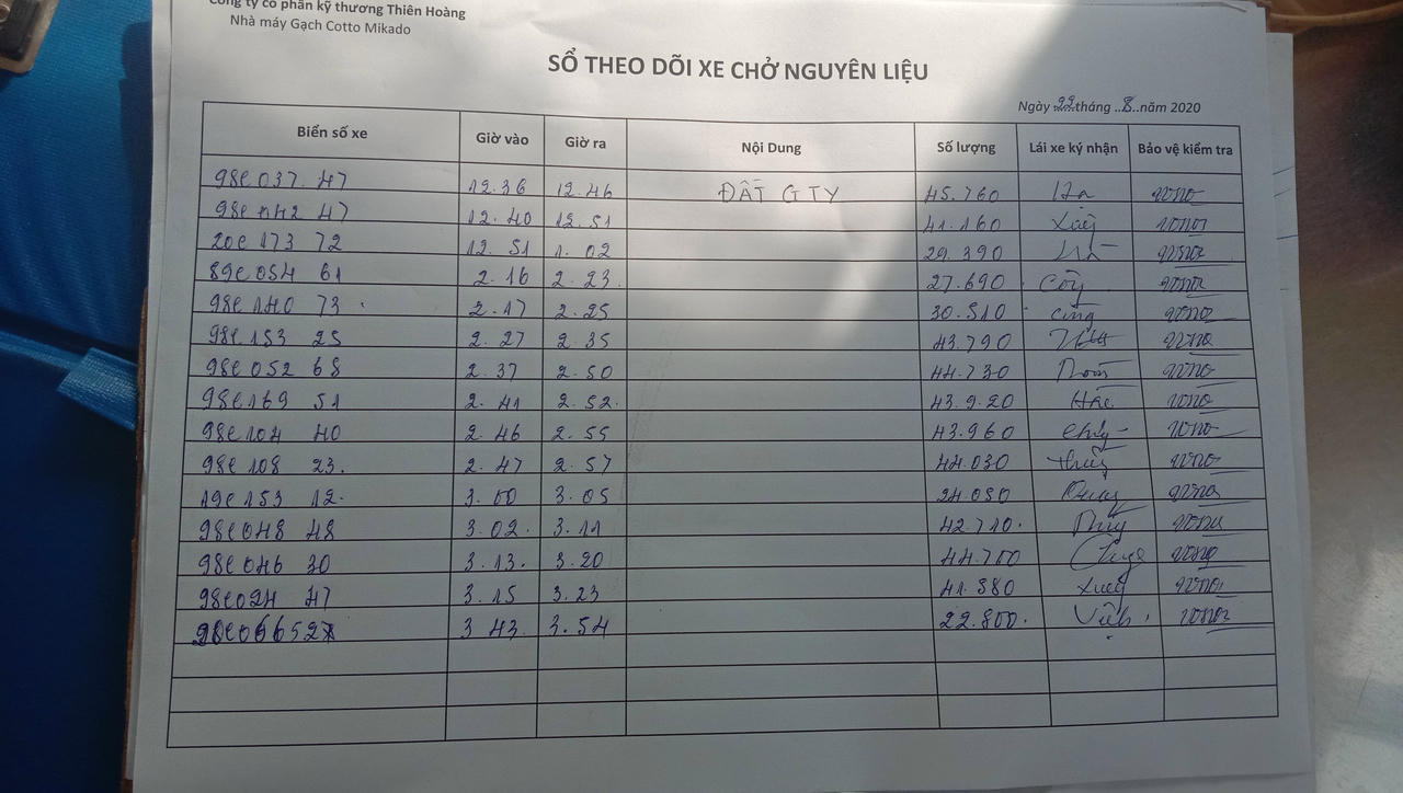 Đổ đất xong, lái xe nhanh chóng cho xe quay lại trạm cân để lấy phiếu cân mang ra phòng bảo vệ phía ngoài cổng chính xin chữ ký và quay lại mỏ đất tiếp tục hành trình. Hoạt động trên diễn ra thường xuyên từ khoảng 8h sáng đến 21h đêm.