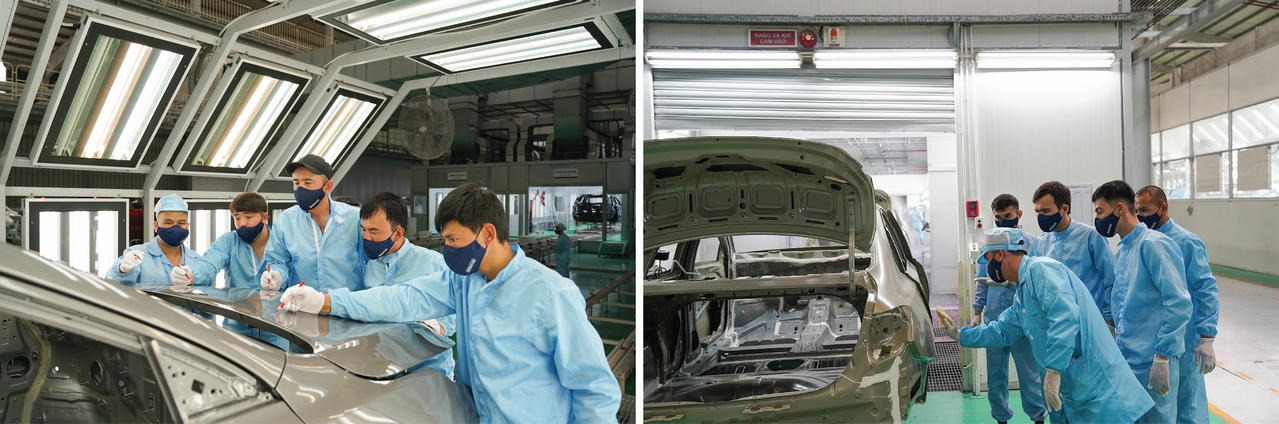 Kỹ sư nhà máy THACO KIA hướng dẫn quy trình bắn keo |