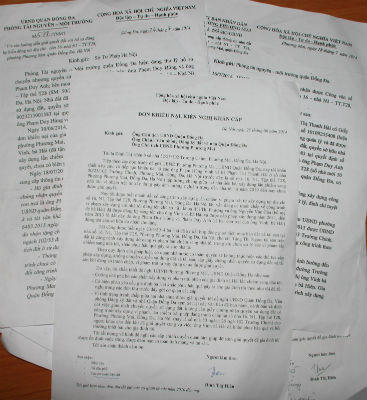 Không đồng tình, bà Hiên đã làm đơn trình lên UBND quận Đống Đa đề nghị không xem xét việc chuyển nhượng quyền sử dụng đất giữa các bên cho đến khi xử lý dứt điểm việc lấn chiếm, khắc phục hậu quả và bồi thường cho gia đình bà.