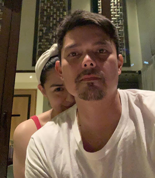 Trong một bức ảnh khác Marian Rivera đăng tải với nội dung "Chào buổi sáng", cô nép vào lưng chồng, cặp đôi trông rất tình tứ. Marian thậm chí để mặt mộc, tóc bới cao như vừa mới rửa mặt.