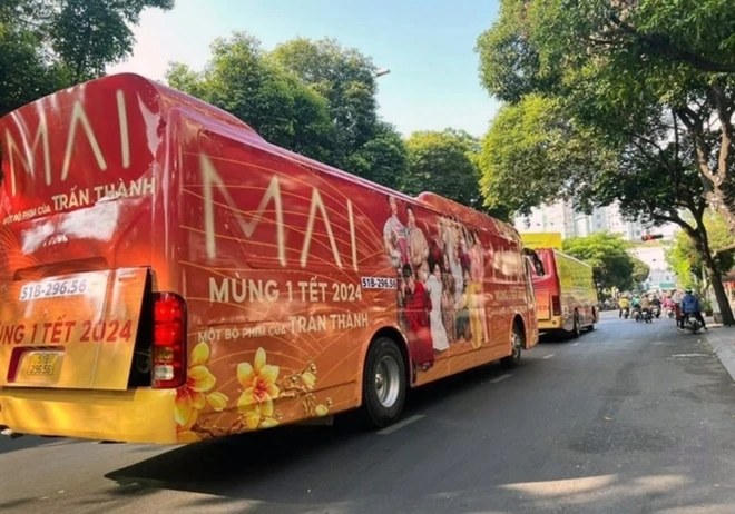 Theo phản ánh, phim của Trấn Thành đang trong giai đoạn quảng bá trước khi ra rạp chính thức vào dịp Tết Nguyên đán. Những ngày qua, chiếc xe ô tô khách loại 47 chỗ được phủ kín nội dung quảng cáo về bộ phim “Mai”. Trong đó, phần thân và sau xe in hình các diễn viên cùng thông báo thời gian phim công chiếu. Đại diện Sở VH-TT TP HCM cho biết, trường hợp này vi phạm điều 32 của Luật Quảng cáo.