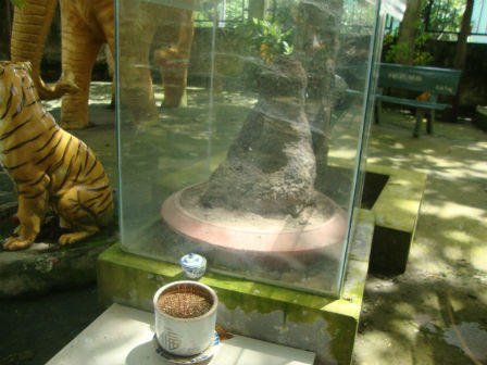 Cũng bởi tỏ lòng tôn kính với vị thiền sư hiến thân đổi lấy bình yên cho xóm làng, người dân cúng dường không ít các bảo vật quý hiếm. Một trong những bảo vật độc đáo được phật tử dâng lên là ụ mối có hình quan âm an toạ trên tòa sen.