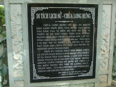 Từ đây, người dân yên ổn khai phá vùng đất màu mỡ cho đến bây giờ. Để tỏ lòng nhớ ơn vị thiền sư, dân làng quyên góp lập ra chùa thờ tự ông với tên gọi Long Hưng cổ tự. Chùa còn có tên Tổ đỉa, ý nói ngày trước vùng đất cổ tự toạ lạc là tổ đỉa khổng lồ.