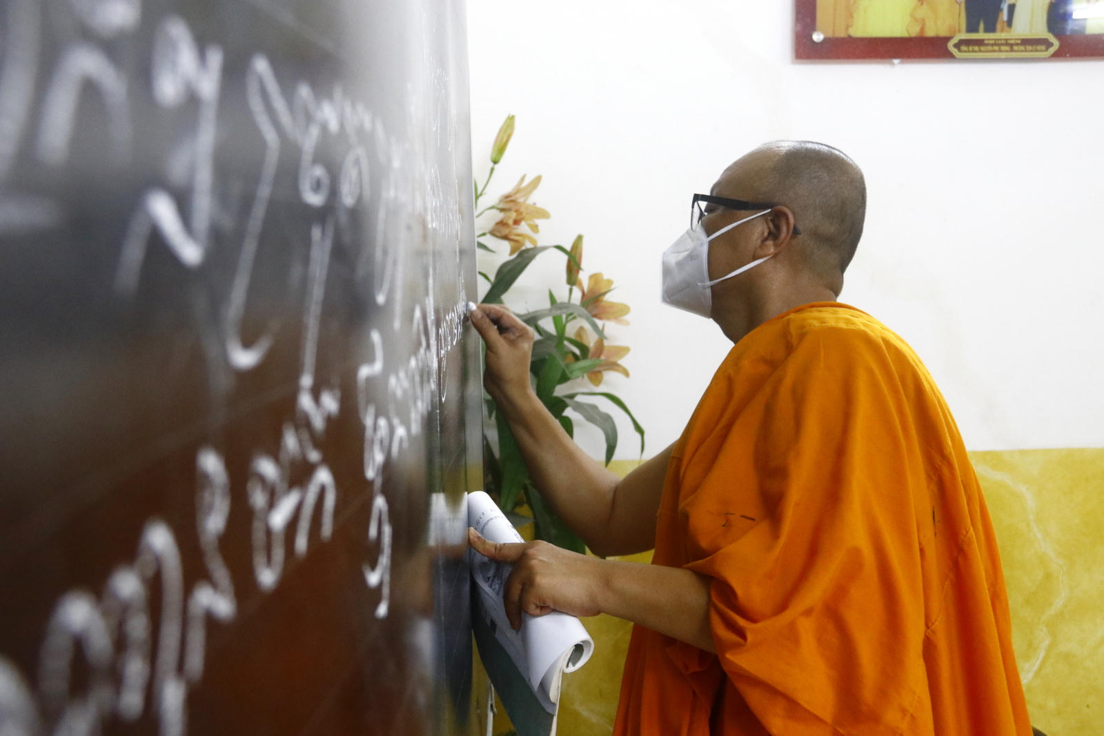 Thượng tọa Lý Hùng luôn tận tụy giảng dạy cho sinh viên về phong tục, tập quán và các giá trị tốt đẹp của đồng bào dân tộc Khmer |