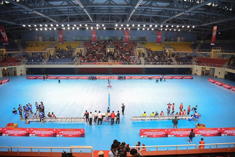 Tại đây, tầng 1 được bố trí đầy đủ các phân khu gồm: Khu vực sân tổ chức thi đấu các môn thể thao như bóng đá mini, cầu lông, bóng rổ, bóng bàn, bóng ném, thể dục dụng cụ, võ thuật… sử dụng thảm sàn đa năng đạt tiêu chuẩn thi đấu quốc tế. Tầng 2 và 3 là khu vực khán đài, chỗ ngồi, phòng truyền thông, phòng điều khiển, hội thảo...