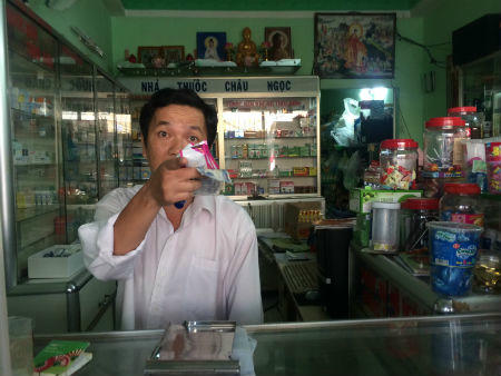 | Người đàn ông nói dối nhà báo tại nhà thuốc Châu Ngọc, số 247/63 đường Lạc Long Quân (quận 11). Ảnh: Võ Anh Tuấn |
