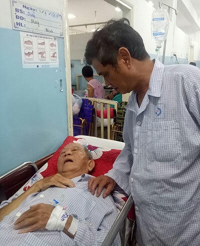Diễn viên Mai Trần (phải) vào việnthăm nhà văn Mạc Can. Ảnh:M.T. |
