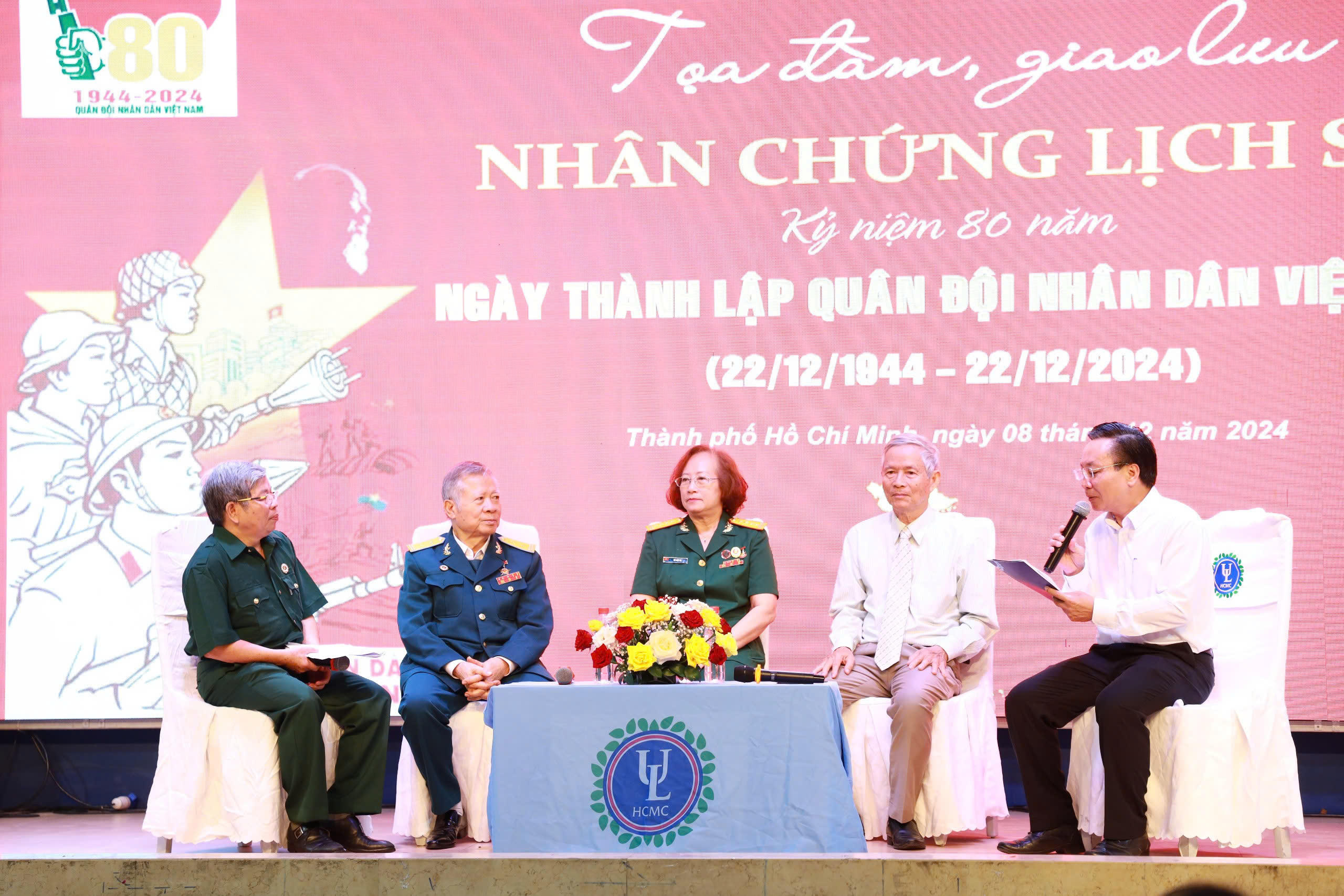 (PLVN) - Mới đây, tại Thành phố Hồ Chí Minh, 03 trường đại học trên địa bàn TP đã phối hợp tổ chức thành công buổi Tọa đàm, giao lưu với “Nhân chứng lịch sử” nhân dịp kỷ niệm 80 năm thành lập Quân đội Nhân dân Việt Nam.