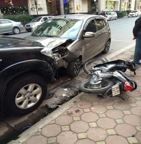 Chị Nguyễn Thị Huyền, bán bún cá gần đó cho biết, chiếc xe hiệu Kia Morning mang BKS 29A-46.257 lưu thông theo hướng Lê Đại Hành ra ngã 5 giao cắt đường Trần Khát Chân - Bạch Mai - Đại Cồ Việt - Phố Huế bất ngờ mất lái lao sang phía làn đường ngược chiều, tổng thẳng vào xe máy Honda WaveS và xe ôtô hiệu Toyota Fortuner.