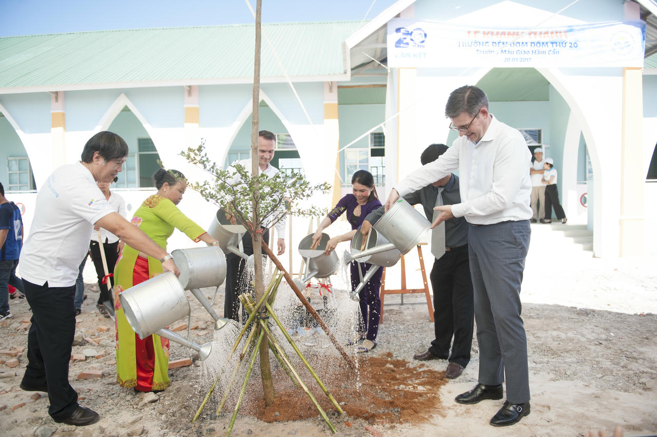 Buổi lễ khánh thành trường Đèn Đom Đóm thứ 20 có sự tham gia của ông Simon van der Burg, Tổng lãnh sự Hà Lan tại TP.HCM và đại diện các sở, ban, ngành tại địa phương.