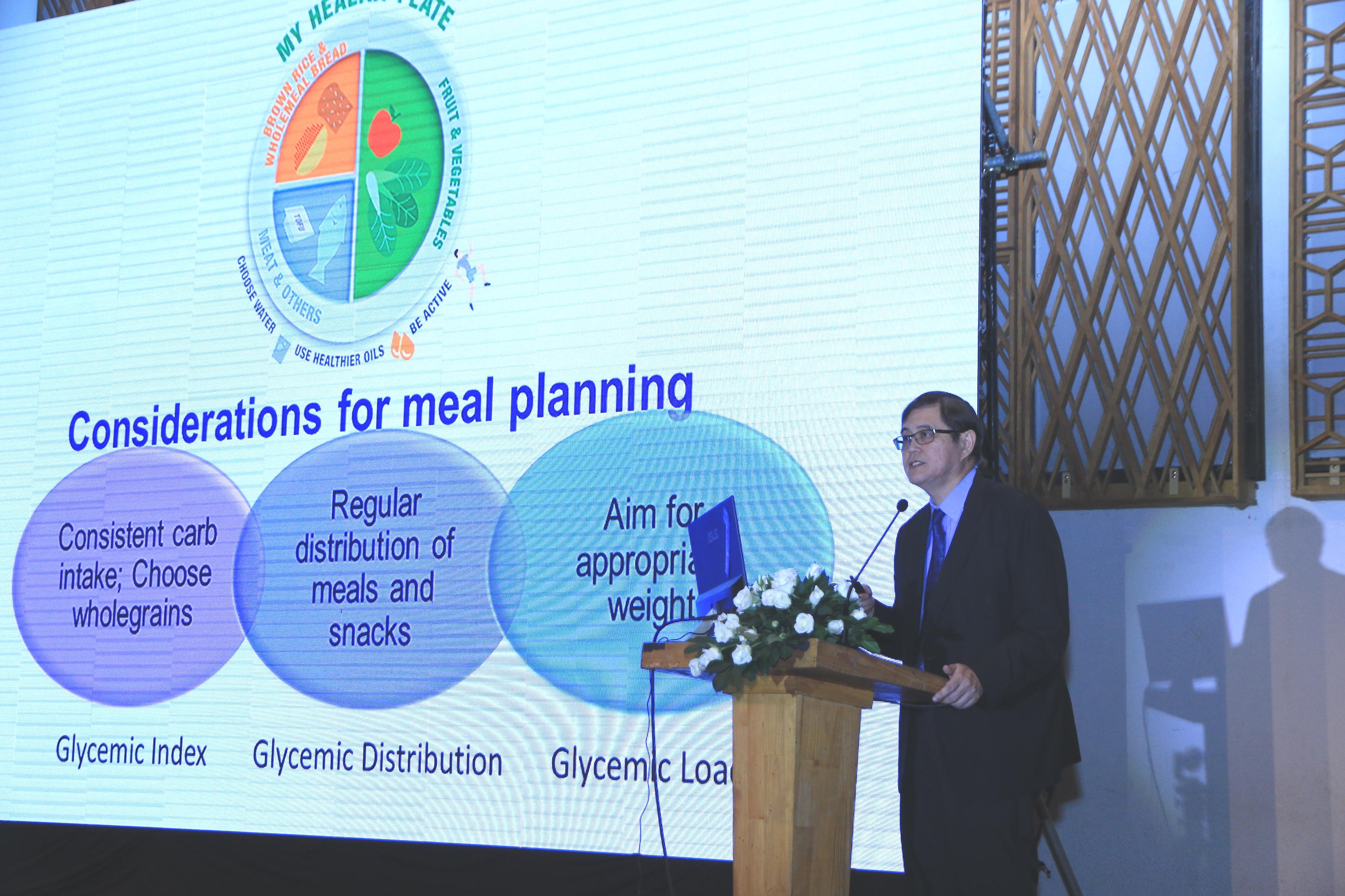 Bên cạnh đó, giáo sư Koh Hian Tan - Chủ tịch Hội chu sinh Singapore, nguyên Chủ tịch Hiệp hội sản phụ khoa Singapore, đồng thời là trưởng khoa Kiểm tra Chu sinh và dịch tễ học bệnh viện Phụ nữ và Trẻ em Singapore, đã có những chia sẻ cùng các bằng chứng khoa học về việc làm sao để tối ưu hoá dinh dưỡng để có thai kì khoẻ mạnh và đặc biệt là những lưu ý về đái tháo đường thai kì.