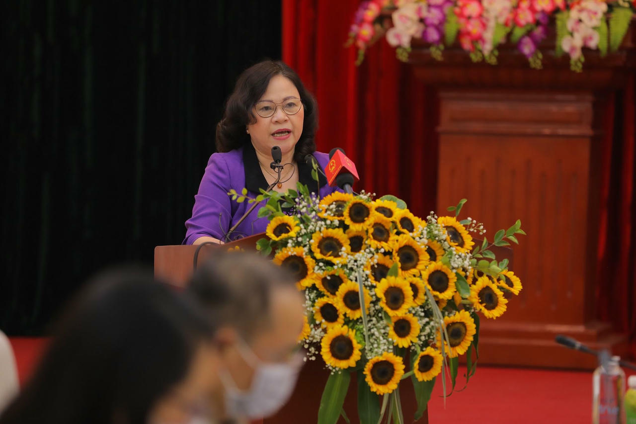 Bà Thái Hương, Nhà Sáng lập, Chủ tịch Hội đồng Chiến lược Tập đoàn TH nhận hoa và kỷ niệm chương đơn vị đồng hành do Thứ trưởng Bộ GD&ĐT Ngô Thị Minh đại diện Bộ trao tặng. |