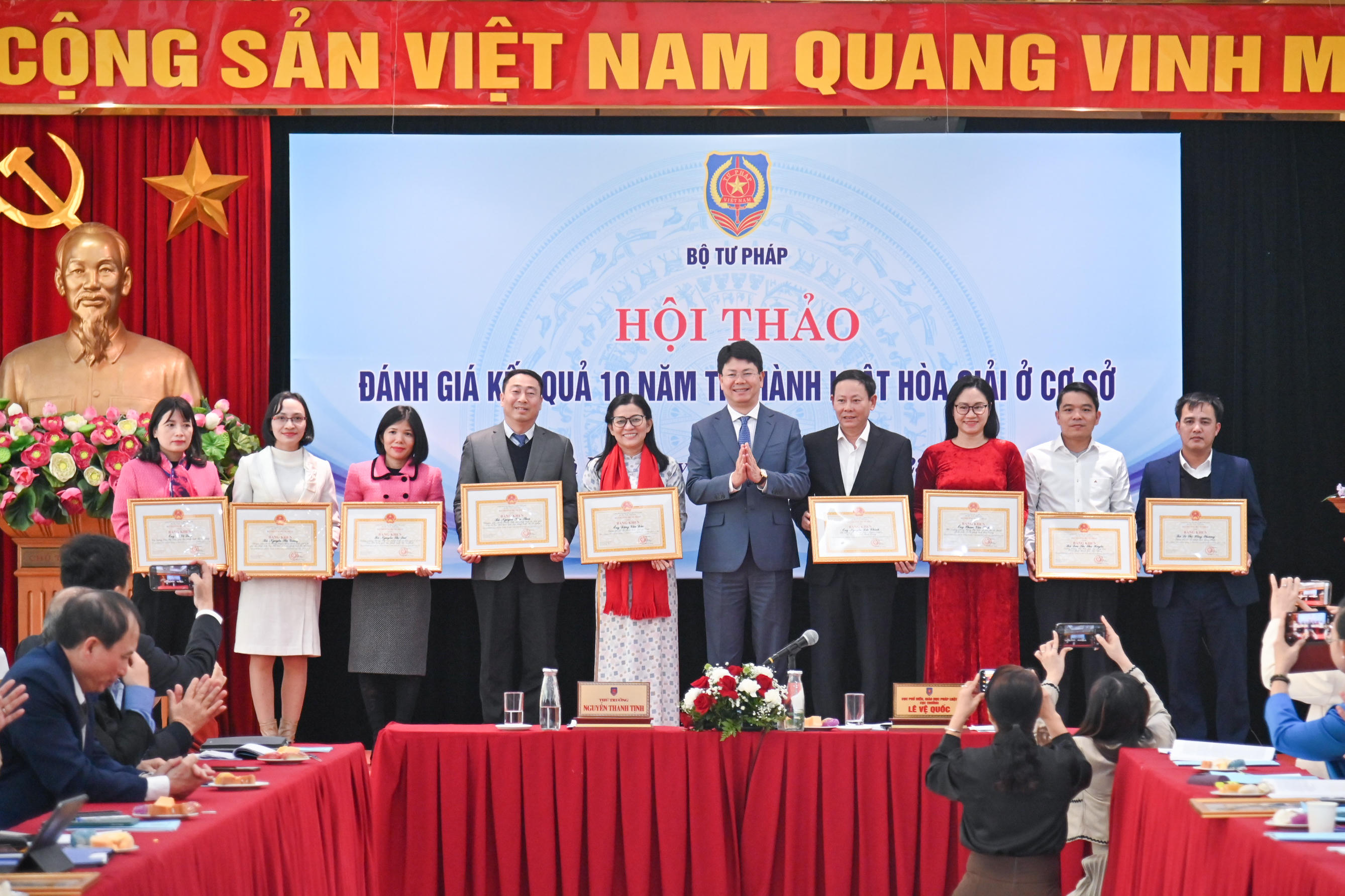 Nhân dịp này, Hội nghị đã trao Bằng khen của Bộ trưởng Bộ Tư pháp cho các tập thể, cá nhân có thành tích xuất sắc trong thực hiện Luật Hoà giải ở cơ sở.