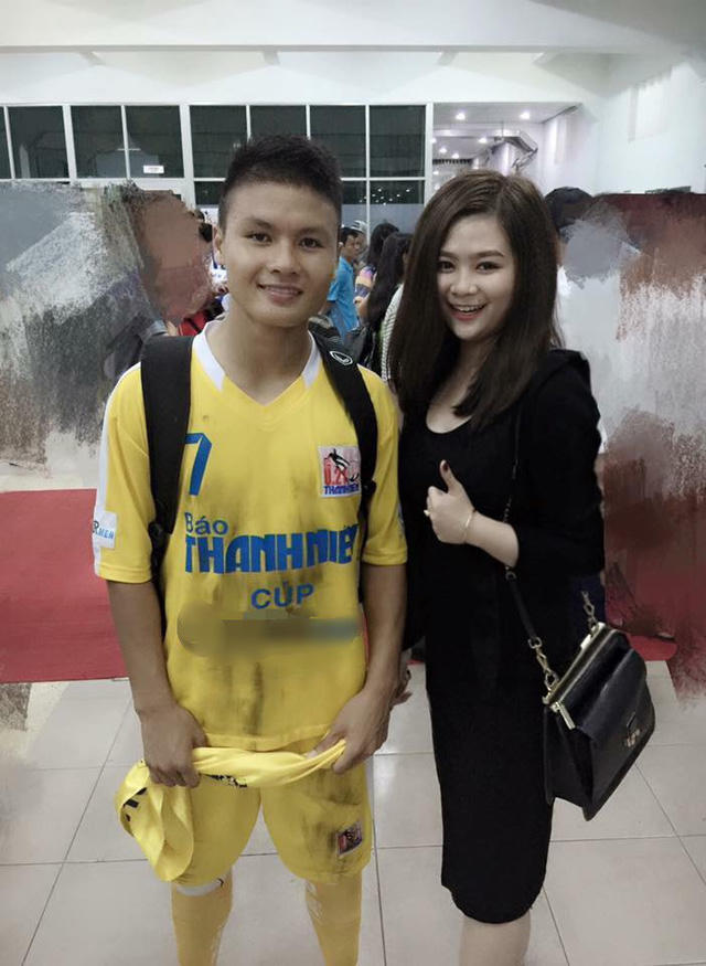 Cô và chàng tiền vệ người Hải Dương quen nhau năm 2015, trong dịp cô cổ vũ U23 Việt Nam dự SEA Games ở Singapore. Khi đó, cô đang là du học sinh Việt Nam, học Anh văn tại đảo quốc sư tử.