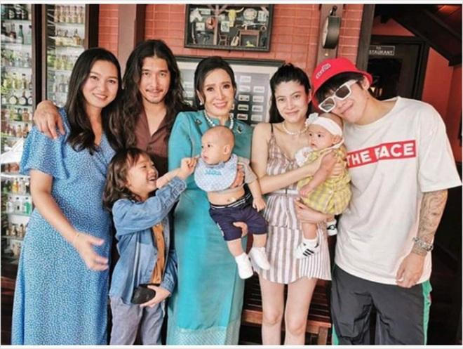Cựu hoa hậu Apasra Hongsakula hạnh phúc bên con cháu.