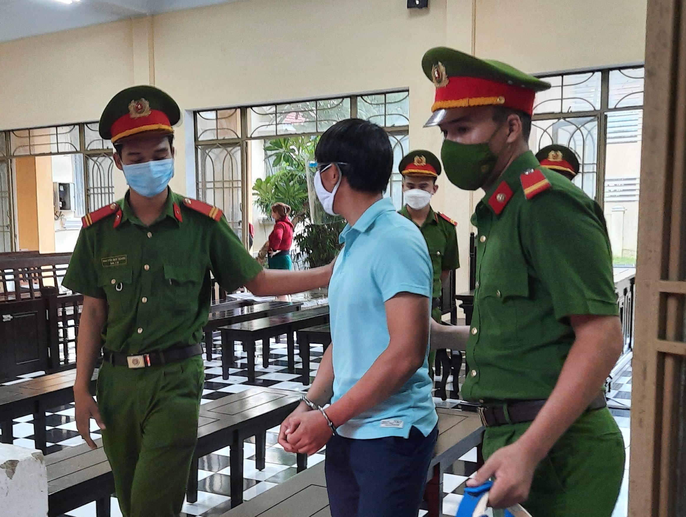 Lực lượng Cảnh sát bảo vệ dẫn giải bị cáo Quang rời phiên tòa. |