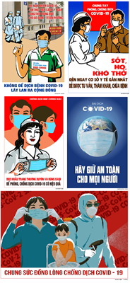 Họa sĩ Lưu Yên Thế (Hà Nội) tham gia cuộc vận động với hai bức tranh cổ động chuyển tải những thông điệp gần gũi, thiết thực: “Sốt, ho, khó thở, đến ngay cơ sở y tế gần nhất để được tư vấn, thăm khám, chữa bệnh” và “Đeo khẩu trang thường xuyên và đúng cách để phòng, chống dịch Covid-19 hiệu quả”.
